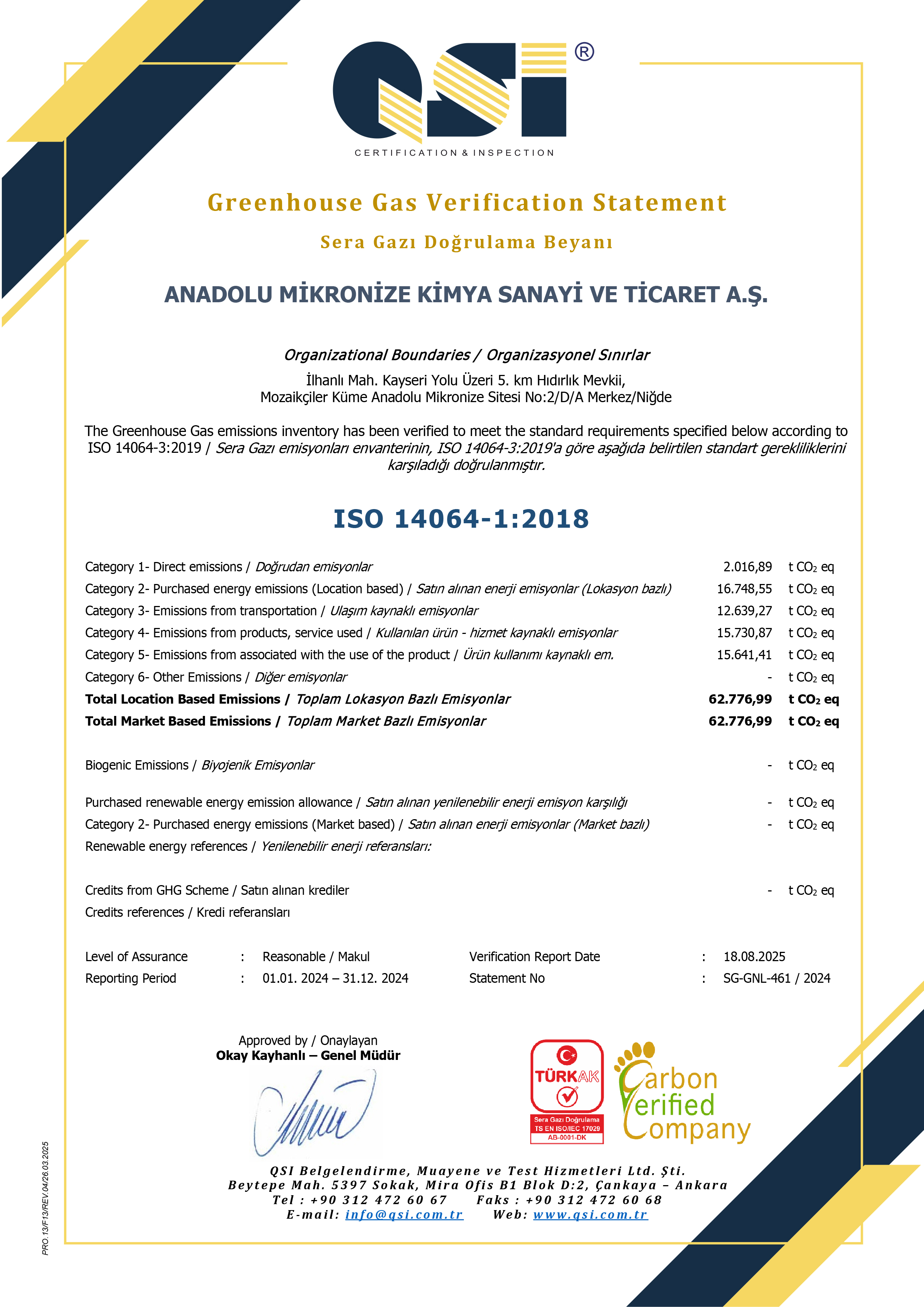 It is the duty of all of us as Anadolu Mikronize employees to achieve business excellence with Total Quality Management.